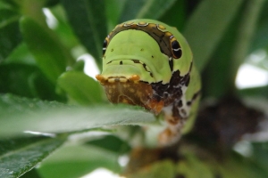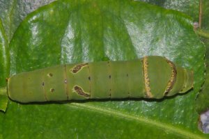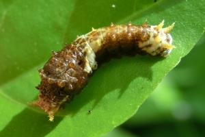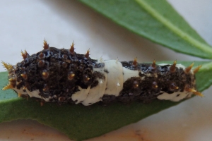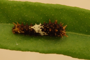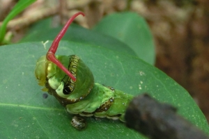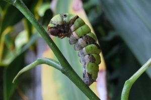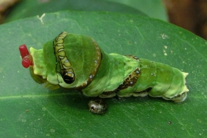 1, gereitzte Raupe zeigt ihr Osmaterium: Indonesien, Bali, Ubud, 17. Februar 2018 (det. & fot.: Kersten Krause)