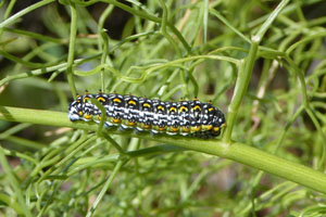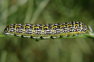 Die Raupe von P. hospiton ist noch wesentlich bunter, als die von P. machaon und kaum zu verwechseln. Hybridraupen zwischen beiden Arten, speziell Rückkreuzungshybriden, sind hingegen schwieriger zu erkennen.