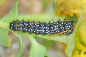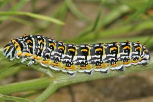 Die Raupe von P. hospiton ist noch wesentlich bunter, als die von P. machaon und kaum zu verwechseln. Hybridraupen zwischen beiden Arten, speziell Rückkreuzungshybriden, sind hingegen schwieriger zu erkennen.