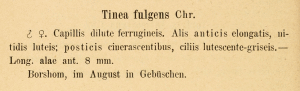 - Tinea fulgens Christoph, 1888 [Originalkombination]
