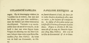 Nur der „Naamwyzer van de dag- en nagt-kapellen“ – im Band 1 der "uitlandsche kapellen" die Seiten 151-155 – ist maßgeblich für das Erscheinungsjahr der Erstbeschreibung, weil dies der einzige binominale Teil des Bandes ist. Nach Hemming (1958: 41) wurden diese Seiten 1776 publiziert.
