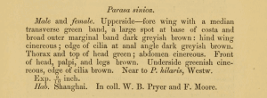 - Erstbeschreibung: Moore, F. (1877): New Species of Heterocerous Lepidoptera of the Tribe Bombyces, collectes by Mr. W. B. Pryer chiefly in the District of Shanghai. — The Annals and Magazize of Natural History, Including Zoology, Botany, and Geology. Fourth Series 20: 83-96. London (Taylor and Francis).