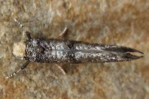 Der graue Thorax ist charakteristisch für Paraswammerdamia nebulella. Bei der Nachbarart Paraswammerdamia albicapitella ist der Thorax weiß.