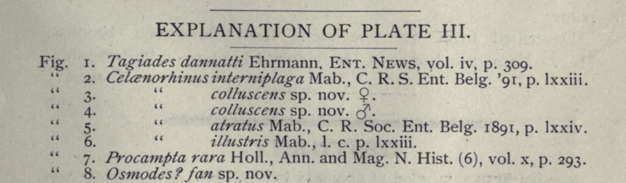 - Erstbeschreibung: Holland, W. J. (1894): Some new and little-known African Hesperiidae. — Entomological News and Proceedings of the Entomological Section of the Academy of Natural Sciences of Philadelphia 5 (3): 89-95, pl. III. — Digitalisat auf biodiversitylibrary.org: [91], [pl. III fig. 8]