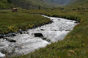 Die Art hat einen sehr speziellen Lebensraum: Er liegt an Quellen, entlang von Gebirgsbächen und auf überfluteten Wiesen, wo die Nahrungspflanze der Raupe, der Bewimperte Steinbrech (Saxifraga aizoides) wächst. Diese Pflanze kommt nur an solchen nassen Stellen vor, oftmals an flachen Stellen oder auf Steinen im Bach selbst.