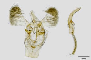 2: ♂, Deutschland, Thüringen, Herbsleben, Feuchtgebiet Herbslebener Teiche, 160 m, 28. Juni 2024, am Licht (leg., präp., det. & Foto: Hartmuth Strutzberg), GU2300, B32636, Referenz Bengtsson & Johansson (2011: 149)Forum