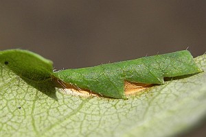 Die Raupen leben in der Regel an Weißdorn (Crataegus) spp., anfangs minierend, später unter einem Blattumschlag.