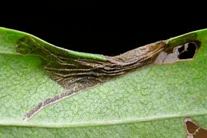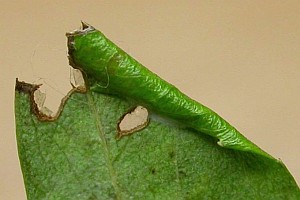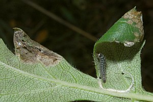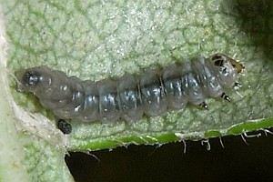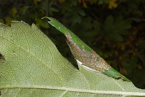 Die Raupen leben in der Regel an Weißdorn (Crataegus) spp., anfangs minierend, später unter einem Blattumschlag.
