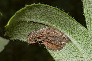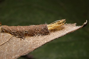 1: Verpuppungsgespinst, Deutschland, Thüringen, Köpfchen bei Steinbach Hallenberg, an Crataegus sp., leg. 17. September 2008 (Foto: Uwe Büchner), det. Uwe BüchnerForum
