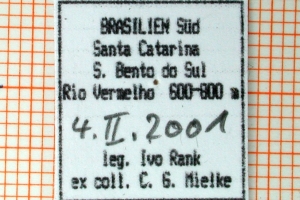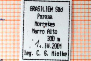 4-6: ♂, Daten siehe Etiketten (fot.: Ernst Brockmann, Fotos bearbeitet: Michel Kettner), coll. Departamento de Zoologia, Universidade Federal do Paraná, Curitiba, Paraná, Brazil.