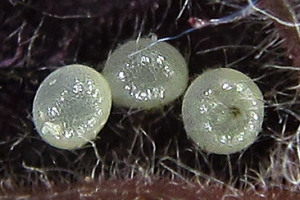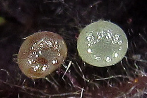 1-3: nur die rötlichen Eier sind befruchtet: Deutschland, Niedersachsen, Haste, Bahnhofsgelände am Waldrand, 50 m, ♀ in Unterführung 7. Juni 2024, Eiablage einige Tage später, Fotos 13. Juni 2024 (det., cult. & fot.: Tina Schulz)Forum