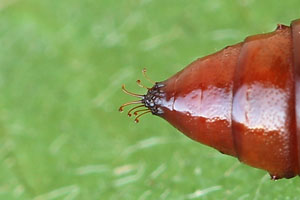 5-6: Deutschland, Sachsen, Dübener Heide, Umgebung von Doberschütz, Raupen an Hainbuche (Carpinus betulus), 5. September 2008 (manipulierte Freilandfotos: Heidrun Melzer), det. Heidrun Melzer