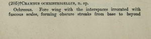 - Erstbeschreibung: Hampson, G. F. (1896): On the Classification of the Schœnobiinæ and Crambinæ, two Subfamilies of Moths, of the Family Pyralidæ. — Proceedings of the General Meetings for Scientific Business of the Zoological Society of London for the Year 1895 (4): 897-974. London (Messrs. Longmans, Green, and Co.).