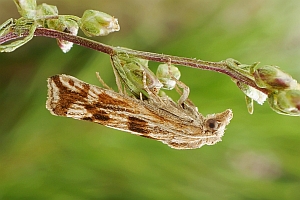 Schütze (1931: 189) berichtete: "Raupe bis Juli [...] Raupe in der Wurzel. Bewohnte Stöcke sehen krank aus und lassen sich leicht herausreißen. Verwandlung in der Wohnung (Sorhagen). Stange zog den Falter aus im Winter eingetragenen Wurzeln." Dies scheint die einzige bis heute bekannte Nahrungspflanze der Art zu sein - zu prüfen ist allerdings, ob im östlichen Arealbereich nicht noch weitere Artemisia-Arten mitgenutzt werden können.