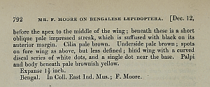 - Erstbeschreibung: Moore, F. [1866]: On the Lepidopterous Insects of Bengal. — Proceedings of the Scientific Meetings of the Zoological Society of London for the Year 1865: 755-823, pl. XLI-XLIII.