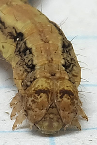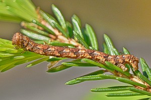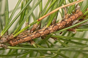 5: Österreich, Niederösterreich, Umfeld Neunkirchen, Raupe unter Hasel am Seidenfaden, könnte von der Fichte darüber stammen, Mischwaldrand, ca. 550 m, leg. 15. Juni 2022, Zuchtfoto 22. Juni 2022 (cult., det. durch Zucht zum Falter & fot.: Johann Stückler)Forum