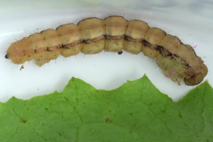 6-7: anderes Exemplar, verpuppungsreif: Schweiz, Kanton Bern, Hasliberg, 1050 m, Buchen-Fichten-Mischwaldrand, angrenzende Magerwiese mit Naturgarten mit Nordmannstanne (Abies nordmanniana) und Föhre (Pinus), 18. Juni 2013 (leg., cult., det. & Fotos: Hildegard Stalder)Forum