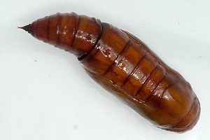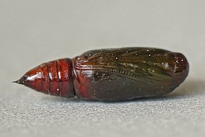 12: Vorpuppe/Praepupa: Österreich, Niederösterreich, Umfeld Neunkirchen, unter Hasel am Seidenfaden, könnte von der Fichte darüber stammen, Mischwaldrand, ca. 550 m, leg. 15. Juni 2022, Zuchtfoto 21. Juni 2022 (cult., det. durch Zucht zum Falter & fot.: Johann Stückler)Forum