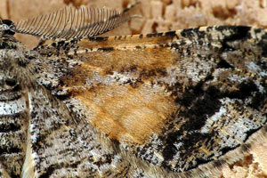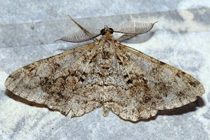 Die Fühlerkammzähne sind bei P. secundaria- Männchen länger als bei Peribatodes rhomboidaria. (Thomas Fähnrich)