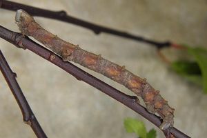 3-4: Raupe, 29. Mai 2016, Eizucht aus ♀ von Deutschland, Hessen, Hörle, 20. August 2015, leg. ♀, cult., det. & Fotos Dieter Robrecht. Es wurden Schlehe und Eichen angeboten, aber nur Schlehe (Prunus spinosa) angenommen