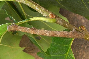 1: Jungraupe (20 mm), Griechenland, Samos, Vourliotes, 3 km S Vourliotes, 880 m, ♀ leg. & det. K. Bech, D. Fritsch & M. Top-Jensen am 12. Juni 2012, cult. ex ovo mit Quercus Dieter Fritsch & Heidrun Melzer (Foto am 22. Juli 2012: Heidrun Melzer)