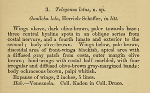 - Erstbeschreibung: Butler, A. G. (1870): Descriptions of some new Diurnal Lepidoptera, chiefly Hesperiidae. — The Transactions of the Entomological Society of London for the Year 1870 (4): 485-520. [Digitalisat auf biodiversitylibrary.org]