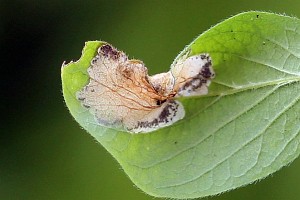 Schütze (1931) teilt zur Raupe mit: "Miniert in den Blättern von Lonicera periclymenum und Lonicera xylosteum blasige Flecke. Verwandlung in einem Gespinst (Sorhagen und andere). Mitteleuropa."