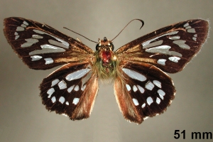 10-12: Holotypus ♀, Daten siehe Etiketten (fot.: Bernard Hermier, Fotos bearbeitet: Michel Kettner), coll. McGuire Center for Lepidoptera and Biodiversity, University of Florida, Gainesville, Florida.