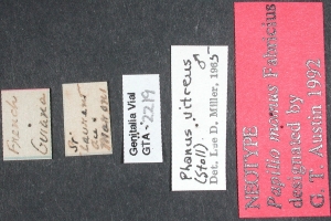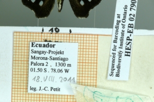 16-18: Neotypus ♂ von Papilio momus Fabricius, 1787, Daten siehe Etiketten (fot.: Bernard Hermier, Fotos bearbeitet: Michel Kettner), coll. American Museum of Natural History. New York City.