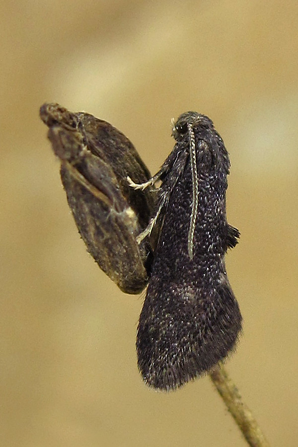 In der Erstbeschreibung von Zeller (1839) wird beschrieben: "24 Ex., zum Theil in Begattung, an den Blüthen des Chaerophyllum bulbosum im Juny gegen Sonnenuntergang gefangen." Wenn die Falter öfter in Anzahl auf Blüten von Doldenblütlern (Apiaceae) zu finden sind, dann wissen wir mittlerweile, dass das nicht nur mit Blütenbesuch oder Geschlechterfindung zu tun hat: Die Falter legen dort auch ihre Eier ab! Bei Schütze (1931) ist zur im August an Aegopodium zu findenden Raupe zu lesen: "In den Samendolden eingesponnen (Schmid), Puppe überwintert (Stange), nach Wocke unter anderem auch an Angelica und Chaerophyllum bulbosum. Und bei Budashkin & Gaedike (2005) ist zu lesen: "Larvae in seeds of Chaerophyllum bulbosum L., Ch. temulum L., Aegopodium podagraria L., Angelica silvestris L. (Apiaceae).