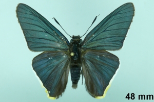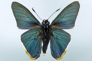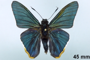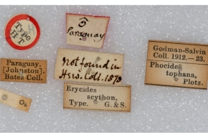 16-18: Holotypus ♂ von Erycides scython, Daten siehe Etiketten (fot.: Nick V. Grishin, Fotos bearbeitet: Michel Kettner), © Images copyright Trustees Natural History Museum, used with permission.