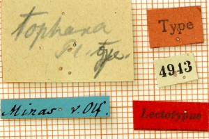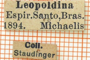 1-3: Holotypus ♂ von Erycides tophana, Daten siehe Etiketten (fot.: Ernst Brockmann, Fotos bearbeitet: Michel Kettner), coll. Zoologisches Museum der Humboldt-Universität zu Berlin.
