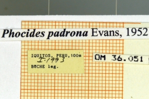 Phocides padrona hat, wie Phocides partia und Phocides pigmalion, eine bestachelte Tibia am mittleren Beinpaar, was diese drei Arten von weiteren sehr ähnlichen unterscheidet. Phocides padrona ist sehr ähnlich Phocides pigmalion hewitsonius (mit der sie vermutlich das Verbreitungsgebiet teilt), hat aber im Gegensatz zu dieser eine wenig ausgebildete, unauffällige Costalfalte. Ferner ist die Submarginalbinde auf der Hinterflügel-Oberseite schwächer und unregelmäßiger ausgeprägt. Der für Phocides partia typische blaue Fleck auf der Vorderflügelunterseite fehlt oder ist schwach angedeutet. Im Zweifel ist eine Genitalpräparation unvermeidlich. (Autor: Ernst Brockmann)