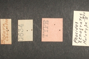 13-15: Holotypus ♂ von Phocides xenocrates Bell, 1932, Daten siehe Etiketten (fot.: Bernard Hermier, Fotos bearbeitet: Michel Kettner), coll. American Museum of Natural History. New York City.