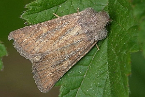 Gestaucht wirkende, kurze Flügelform; Flügelschnitt generell recht konstant und für die Art charakteristisch. Ein ganz gutes Merkmal bei den rötlicheren und gelblicheren Formen ist die schwarz-weiße Bestäubung der Adern im Mittelfeld, die bei den graubraunen Formen allerdings kaum hervortritt [Axel Steiner].