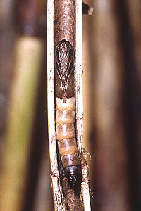 1-3: (1-2: halb erwachsene und erwachsene Raupe), (3: Vorpuppe), Schweiz, Zürich, Illnau-Effretikon, 515 m, leg. 21. April 1999 in Stengelbasis und Wurzelhals von letztjährigem Schilfrohr (Phragmites australis), 2 Falter geschlüpft am 16. Mai 1999 (Studioaufnahmen: Rudolf Bryner), cult. & det. Rudolf BrynerForum
