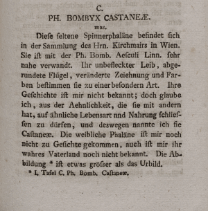 - Erstbeschreibung: Hübner, J. (1790): Beiträge zur Geschichte der Schmetterlinge. Zweiter Band. Erster Theil: 1-31, pl. I-IV. Augsburg (beim Verfasser). — Digitalisat der Universitätsbibliothek Heidelberg: [9], [pl. I].