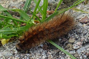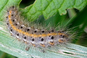 5-7: Deutschland, Sachsen, Dresden-Laubegast, Elbufer, Raupe auf Trampelpfad einer hohen Grasflur, 14. Juni 2007 (Studiofotos: Franziska Bauer), det. Franziska BauerForum