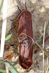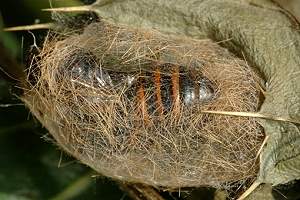 1-2: Kokon und Puppenexuvie, Niederlande, Zuid Flevoland, Zeewolde, Schollevaarweg, an Cirsium arvense, 11. Juli 2006 (Studiofotos am 21. Juli 2006: Allan Liosi), cult. & det. Allan LiosiForum