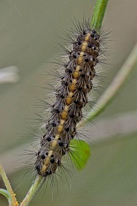 7: Deutschland, Sachsen, Dresden-Laubegast, Elbufer, Raupe auf Trampelpfad einer hohen Grasflur, Raupenfund 14. Juni 2007, Falterschlupf 30. Juni 2007 (Studiofoto: Franziska Bauer)Forum