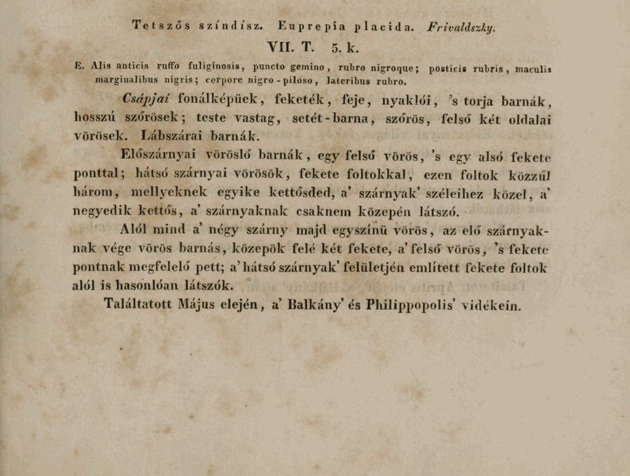 - Erstbeschreibung: Frivaldszky, I. (1835): Közlések a' Balkány' vidékén tett természettudományi utazásról. — A' Magyar tudós társaság' évkönyvei 2: 235-276, pl. 1-7. Buda (Magyar királyi egyetem nyomtatása).