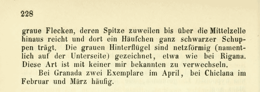- Erstbeschreibung: Staudinger, O. (1859): Diagnose nebst kurzen Beschreibungen neuer andalusischer Lepidopteren. — Entomologische Zeitung 20 (7-9): 211-259. Stettin.