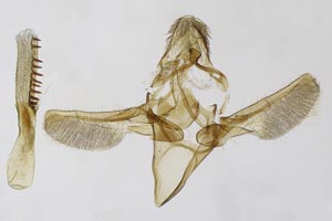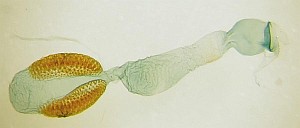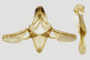 Die Stachel-Leiste in der caudalen Hälfte des Aedeagus kennzeichnet die Art eindeutig.