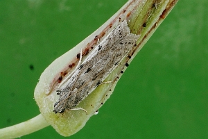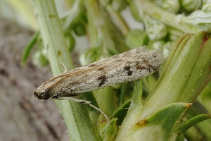 Goater (1986) benennt für Großbritannien nur eine einzige Pflanzenart: "Larva feeds in August and September in the seed-heads of spear thistle (Cirsium vulgare) and hollows out a large cavity therein. When full-grow, it overwinters in a tough, dull brown cocoon on the ground, and pupates in the spring." Barrett (1905: 44) hatte in seinem Werk "The Lepidoptera of the British Islands" allerding schon zuvor festgestellt: "August and September, in the flower and seed-heads of Carduus lanceolatus and occasionally of C. tenuiflorus; eating the seeds and hollowing out a large chamber in the basal Portion of the flower-head."