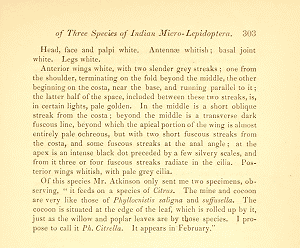 Stainton (1856) folgt dem Vorschlag seines Informanten, Mr. Atkinson: "It feeds on a species of Citrus ... I. propose to call it Ph. Citrella."