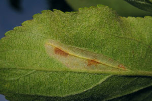 Die Art miniert unterseitig an Wildapfel (Malus sylvestris), Birnbaum (Pyrus communis), Mispel (Mespilus germanica) und Mehlbeere (Sorbus aria) [Bradley, Jacobs & Tremewan (1970)] sowie an Kulturapfel (Malus domestica) [Beitrag von Rudolf Bryner im Lepiforum].