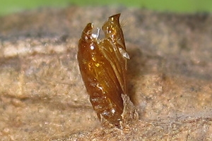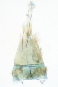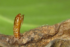 Puppe: Im Gegensatz zu Ph. klemannella befindet sich der Puppenkokon mehr oder weniger in der Mitte der langen Mine.