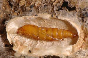 Raupe: Die Raupe von Ph. froelichiella ist schwärzlich und die von Ph. klemannella gelbgrün. (Autoren: Peter Buchner und Rudolf Bryner)