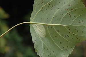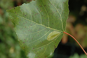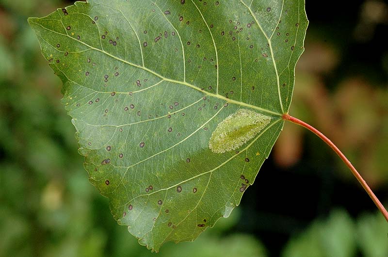1: Schweiz, Bern, Ins, 432 m, 8. Oktober 2005, unterseitige Blattmine an Populus nigra pyramidalis, in Zimmertemperatur: 18. Januar 2006, e.l. 2. Februar 2006 (Foto: Rudolf Bryner), leg., cult. & det. Rudolf Bryner