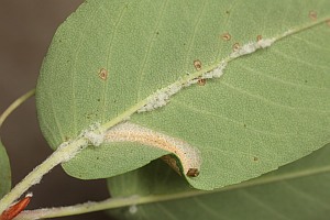 Die Raupe miniert in Blättern verholzender Rosengewächse (Rosaceae) der Gattungen Sorbus, Cotoneaster und Amelanchier.